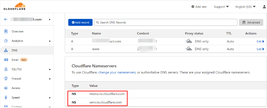 Add the two DNS A records. Then, enable the DNS only mode for your domain and make sure the Proxy status is disabled.
