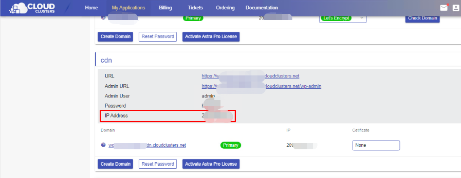 The IP address can be found from the hosting Control Panel of DP-Clusters.
